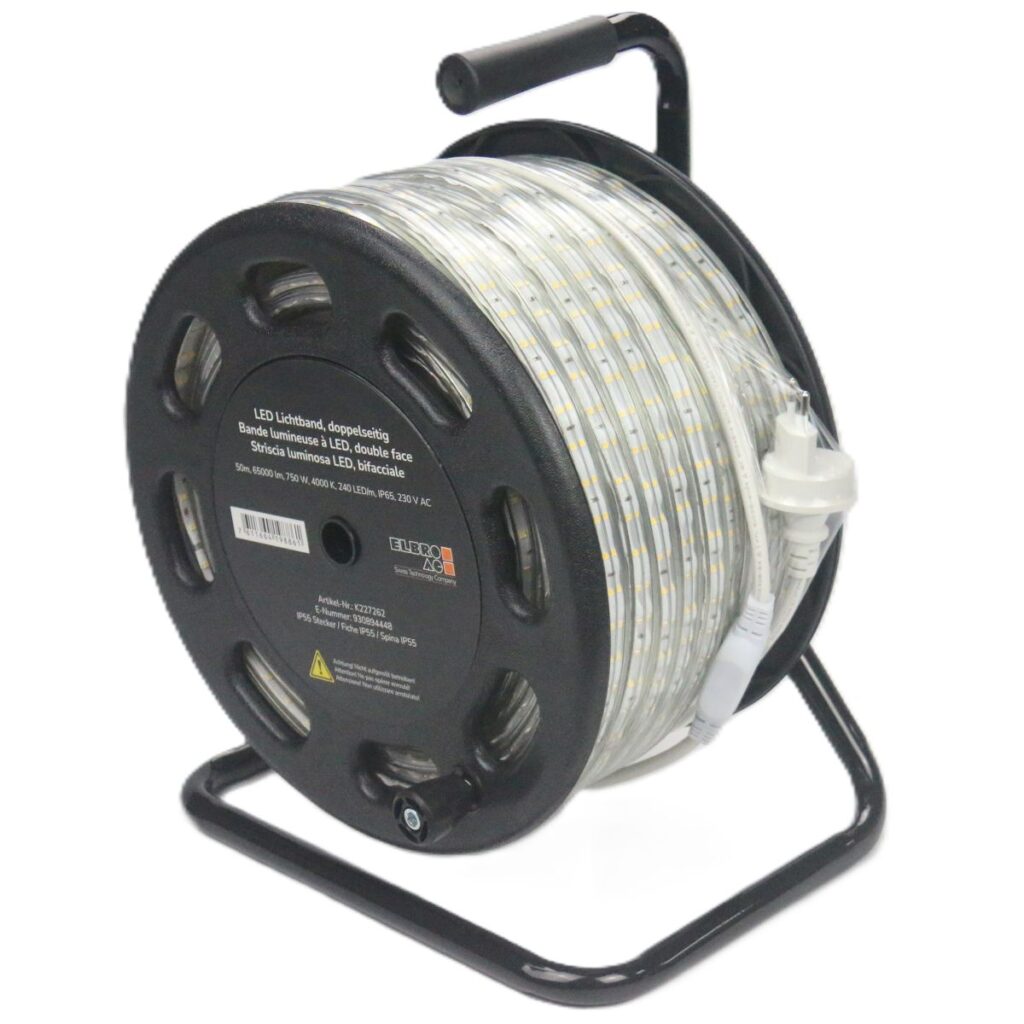 Striscia luminosa a LED per un utilizzo flessibile (LED Strip) su un lato, L= 100 m, 500 W, 120 LED/m , 230 V AC, 4000 K, IP65, su carrello per cavi