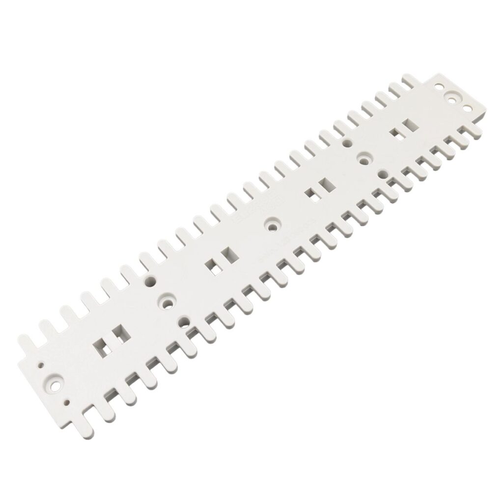 Barra di compensazione del potenziale secondo VDE 0618, parte 1 • Barra in ottone con viti/morsetti in acciaio • Adatta per conduttori in rame e alluminio • 7 morsetti a boccola per conduttori circolari con sezione 2,5 – 25 mm² • Linguetta di fissaggio per nastro di messa a terra 30 x 4 mm / conduttore circolare Ø 8 – 10 mm • Staffa di serraggio per conduttori tondi con sezione 25 – 50 mm² • Fissaggio tramite 4 fori oblunghi nella base in plastica • Robusto coperchio in plastica a scatto • Materiale: PP altamente resistente agli urti, privo di alogeni • Plombabile • Dimensioni: larghezza 172 x 40 x 51 mm • Peso 230 g