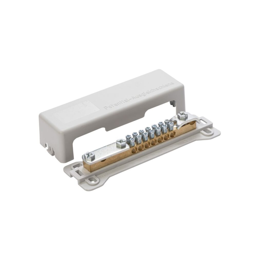Potentialausgleichsschiene, 7-Klemmen, 2.5 – 50 mm², grau, Typ PAS01, VDE 0618 Teil I