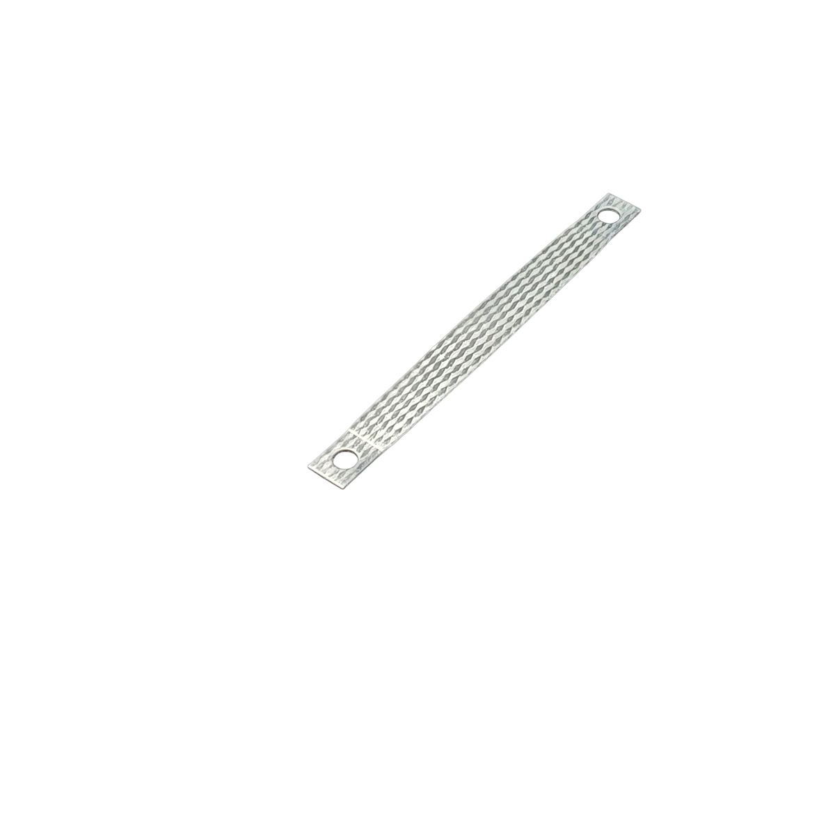 Flexibles Erdungsband bzw. Masseband aus verzinntem Kupfer-Metallgeflecht. Durch gegenseitig überkreuzte Litzen bleibt sowohl unter statischer als auch unter dynamischer Belastung ein enger Zusammenhalt des Flechtwerks gewährleistet. Verpresste Befestigungsösen für eine einfache und flexible Montage.