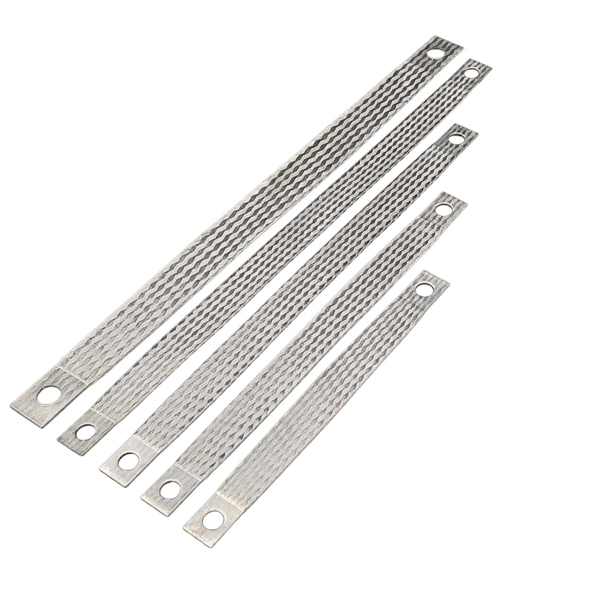 Flexibles Erdungsband bzw. Masseband aus verzinntem Kupfer-Metallgeflecht. Durch gegenseitig überkreuzte Litzen bleibt sowohl unter statischer als auch unter dynamischer Belastung ein enger Zusammenhalt des Flechtwerks gewährleistet. Verpresste Befestigungsösen für eine einfache und flexible Montage.