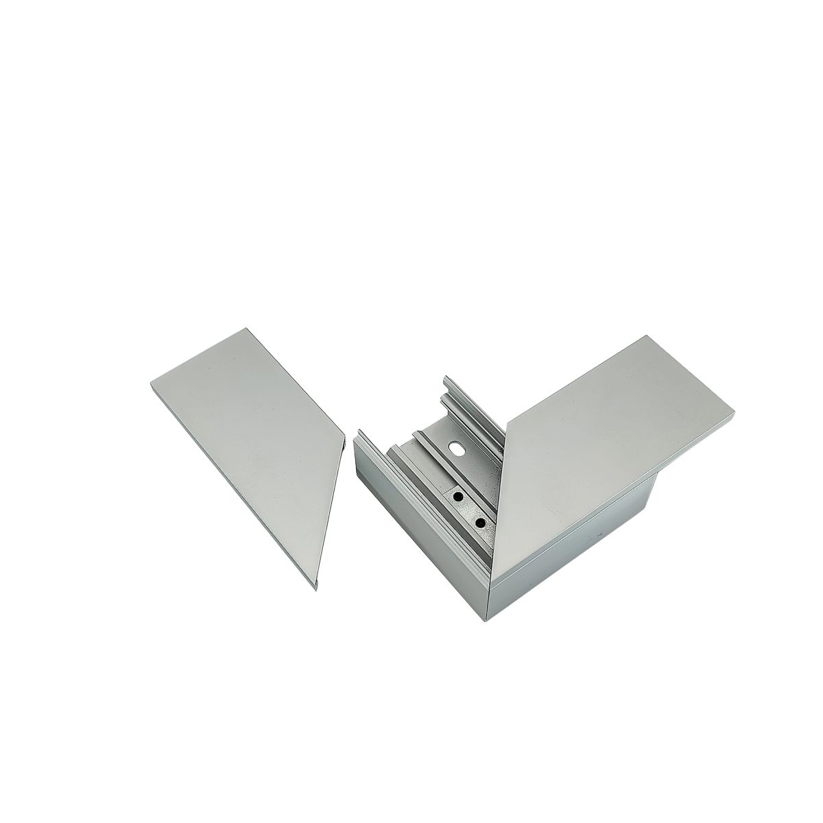 Zubehör zum Programm von Kabelkanälen aus eloxiertem Aluminium in hochwertiger Optik. Hervorragende Verarbeitung und hohe Stabilität in Verbindung mit reduziertem Design bieten die optimale Lösung für ihre Verkabelung. Die Eckstücke, Winkel und Verbinder erlauben eine geschützte und saubere Kabelführung in jeglicher Umgebung.