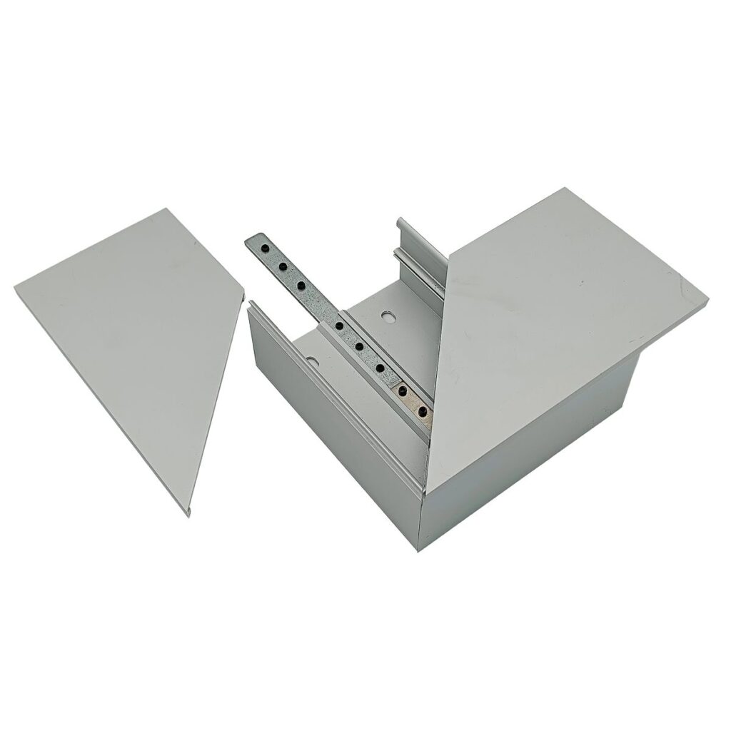 Zubehör zum Programm von Kabelkanälen aus eloxiertem Aluminium in hochwertiger Optik. Hervorragende Verarbeitung und hohe Stabilität in Verbindung mit reduziertem Design bieten die optimale Lösung für ihre Verkabelung. Die Verbinder erlauben eine geschützte und saubere Kabelführung in jeglicher Umgebung.