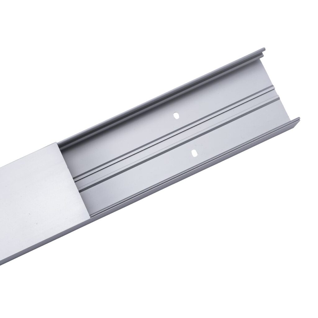 Zubehör zum Programm von Kabelkanälen aus eloxiertem Aluminium in hochwertiger Optik. Hervorragende Verarbeitung und hohe Stabilität in Verbindung mit reduziertem Design bieten die optimale Lösung für ihre Verkabelung.