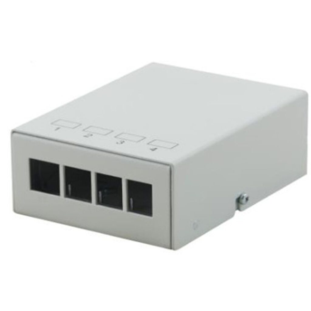 AP-Anschlussbox 4-fach, grau, Keystone, Metall, mit Befestigungsmaterial