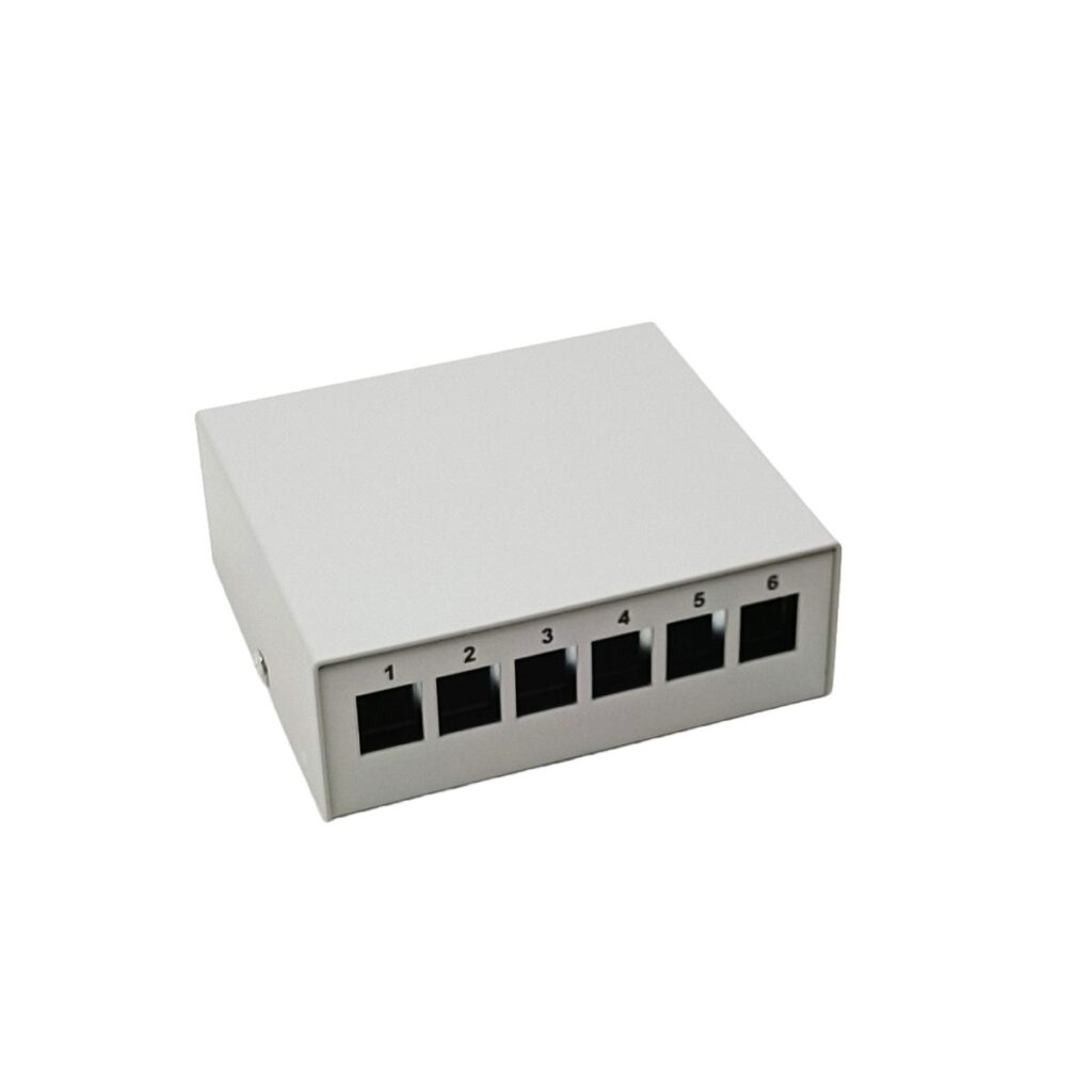 AP-Anschlussbox 6-fach, grau, Keystone, Metall, mit Befestigungsmaterial